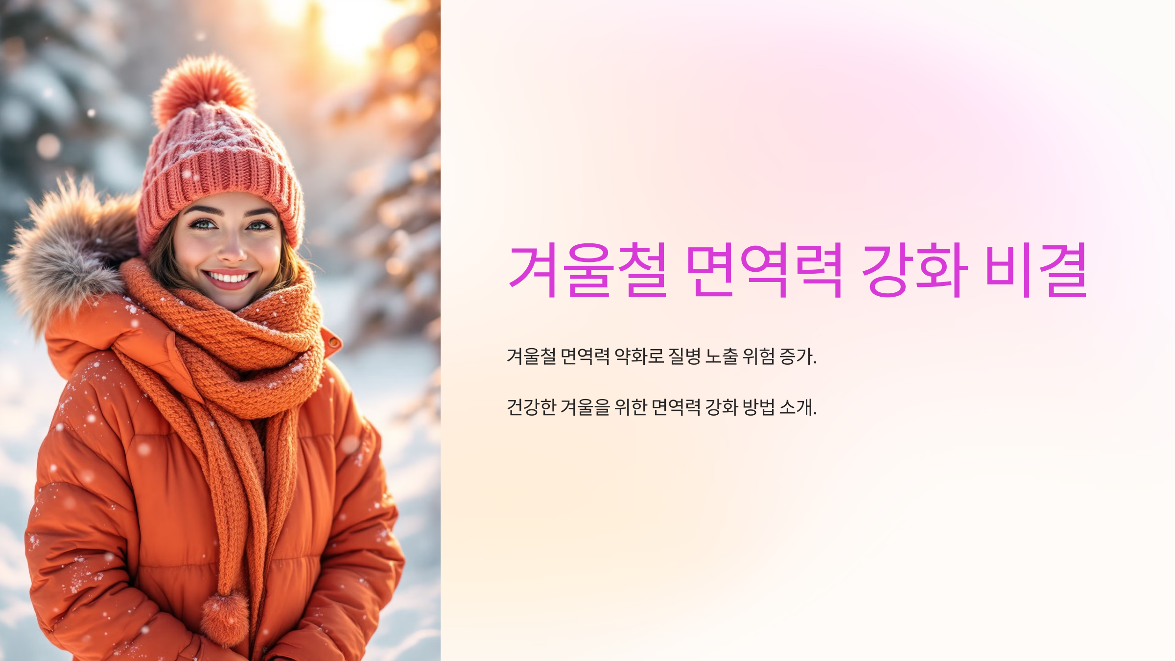 | 겨울철 면역력 강화법: 건강한 겨울을 보내는 비결 ❄️ (1) | 2024.11.02 |