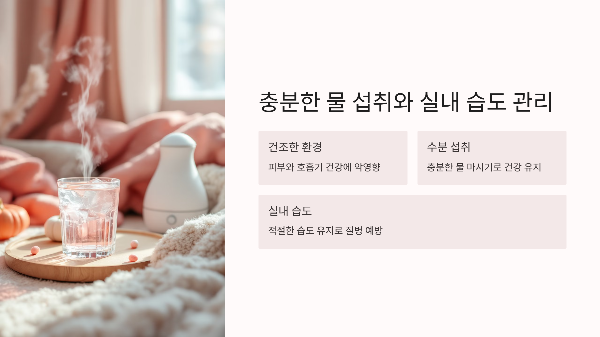 4. 충분한 물 섭취와 실내 습도 관리 💧