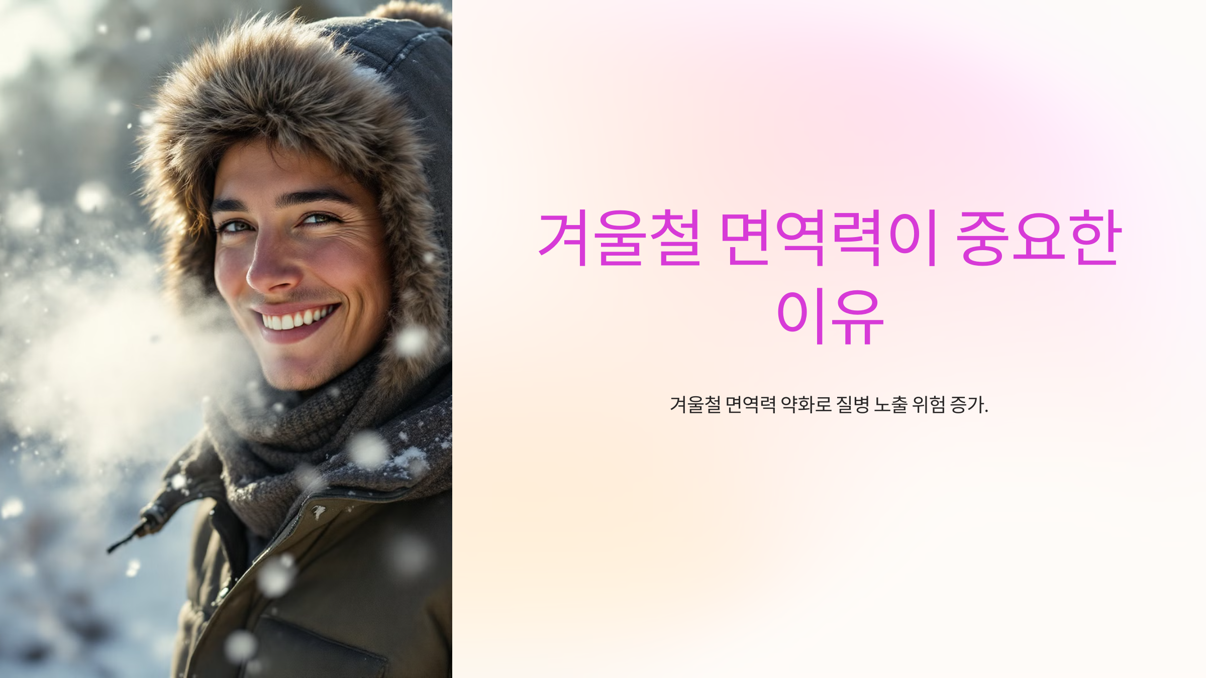 겨울이 다가오면 일교차가 커지고 추운 날씨로 인해 면역력이 약해지기 쉽습니다. 면역력이 떨어지면 감기나 독감 같은 질병에 쉽게 노출되기 때문에 건강 관리가 더욱 중요해지죠. 겨울철에는 어떻게 면역력을 강화할 수 있을까요? 오늘은 건강한 겨울을 보내기 위한 면역력 강화 비결에 대해 자세히 알아보겠습니다. 이 글을 통해 겨울철 필수 건강 습관과 함께, 면역력 유지에 도움이 되는 식습관, 운동법, 생활 팁 등을 소개합니다. 건강한 겨울을 위한 준비, 지금부터 시작해볼까요?