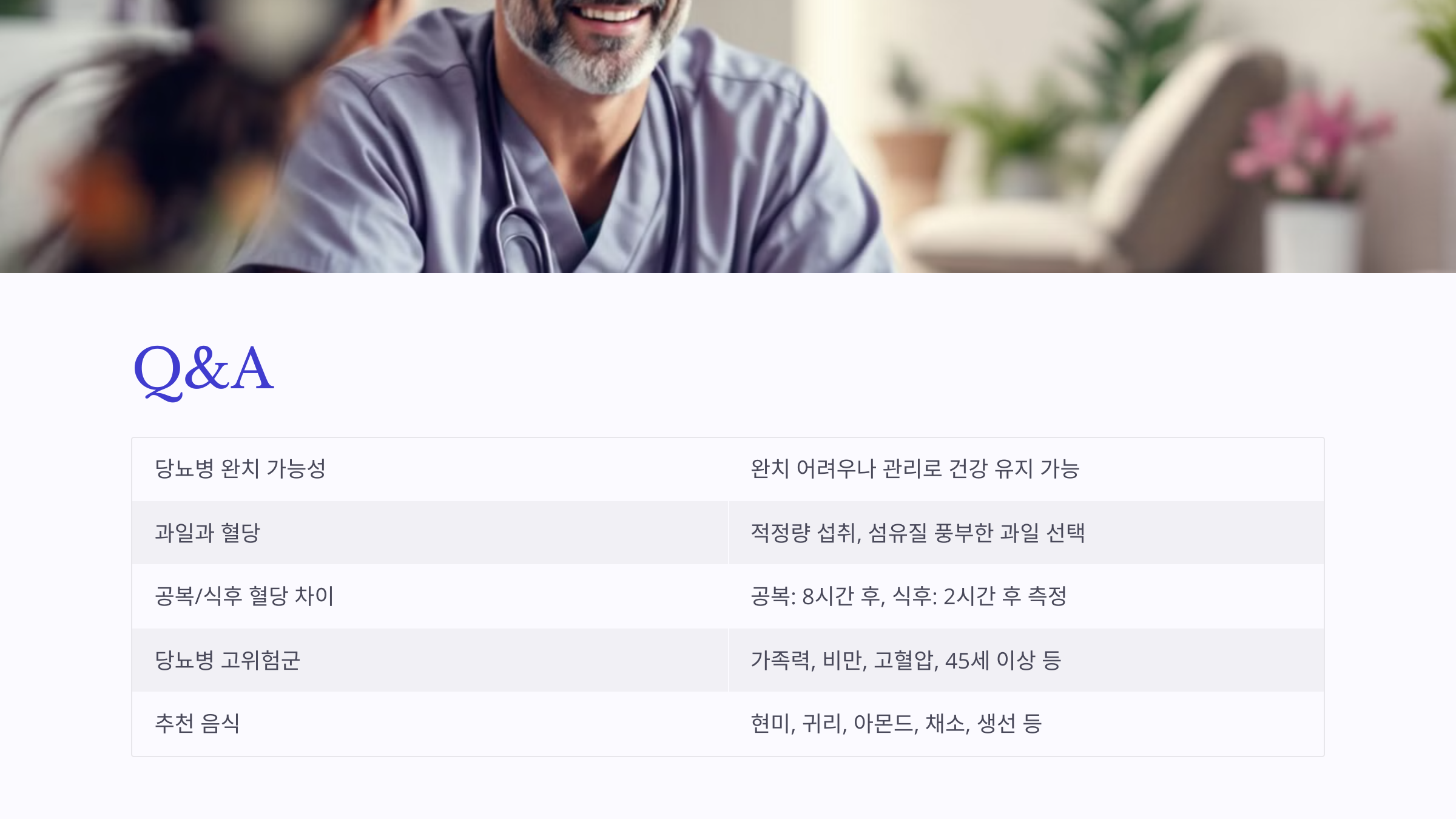 A1. 현재로서는 당뇨병은 완치가 어렵지만, 관리와 치료로 혈당을 정상 범위로 유지하며 건강한 생활을 유지할 수 있습니다.