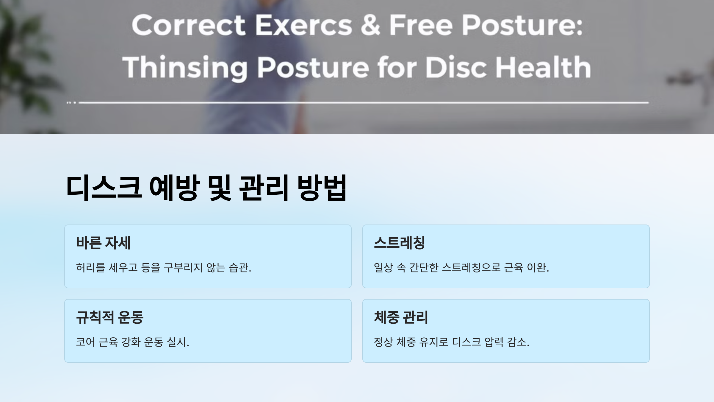 디스크를 예방하고, 기존의 디스크 질환을 관리하기 위해서는 올바른 자세와 생활 습관이 중요합니다.