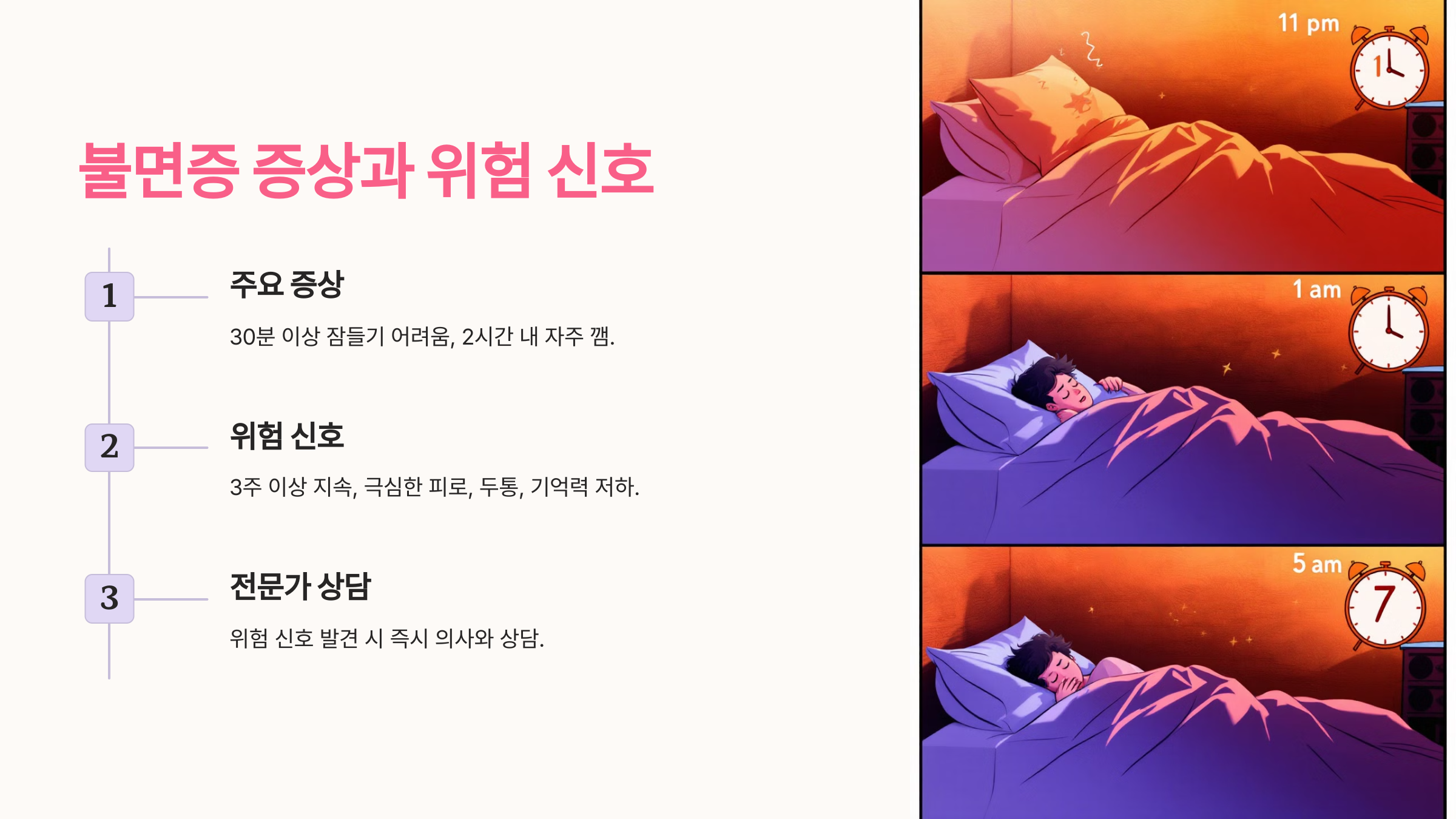 불면증은 만성화될 경우 삶의 질 저하뿐 아니라 심각한 건강 문제로 이어질 수 있으므로 조기 관리가 중요합니다.