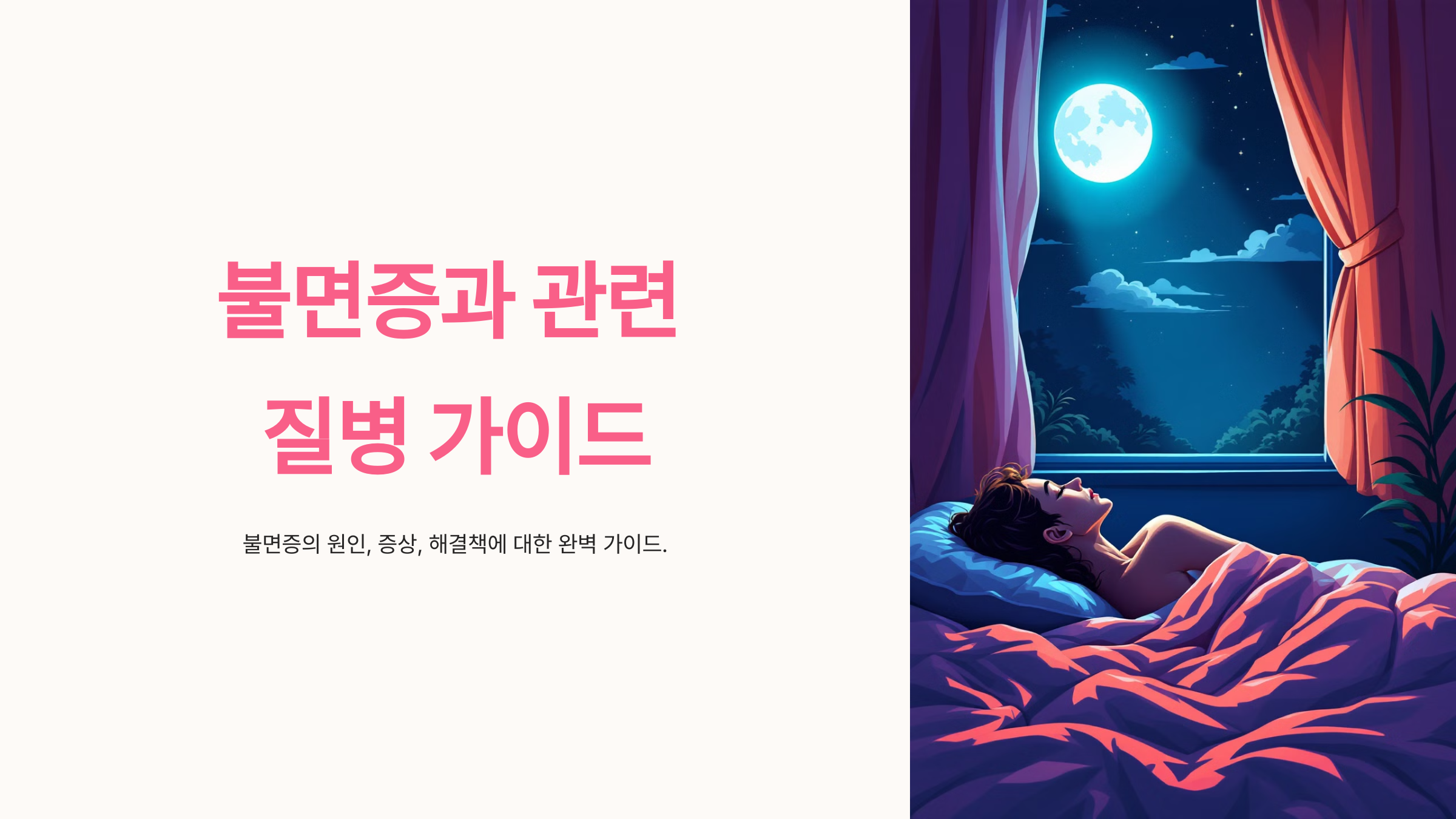 불면증은 잠드는 데 어려움을 겪거나, 잠들어도 자주 깨는 상태를 말합니다. 성인의 30% 이상이 한 번쯤 불면증을 경험하며, 이는 단순한 수면 장애를 넘어 여러 질병과 밀접한 연관이 있습니다.