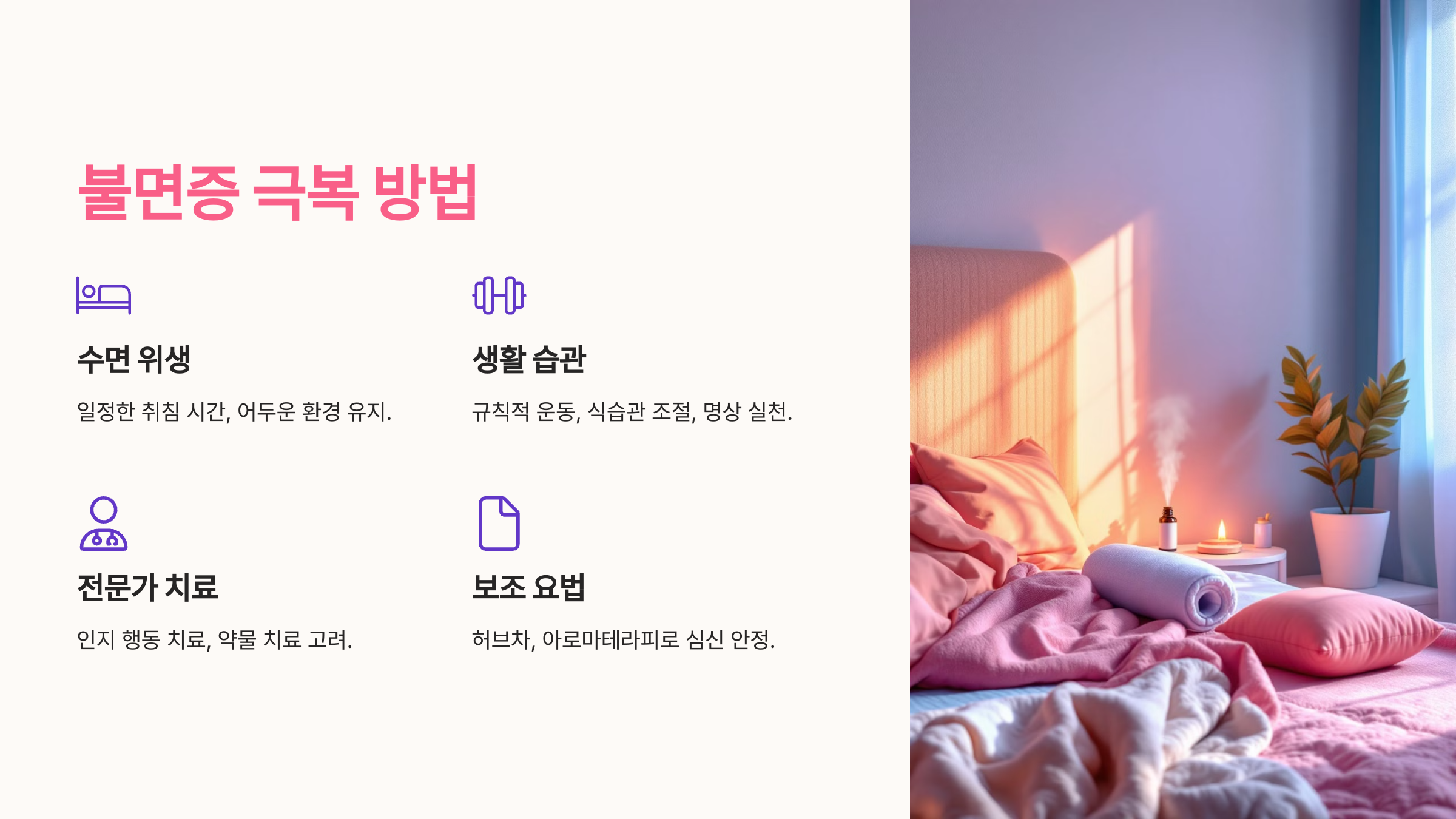 - 수면 환경을 조용하고 어둡게 유지