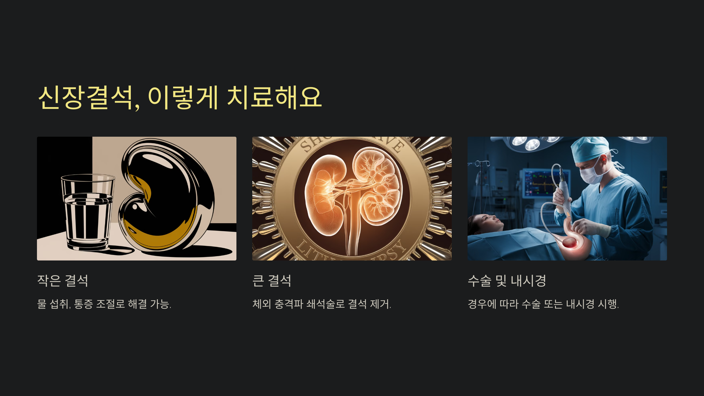 크기가 매우 크거나 체외 충격파로 해결되지 않는 결석은 내시경이나 수술로 제거해야 할 때도 있습니다.